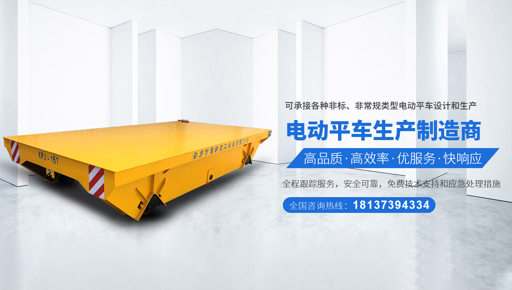 KPT系列拖纜供電系列軌道電動平車,是將交流380V電纜線直接引入平車電氣控制系統,控制平車的啟動、停止、前進、后退、調速等。通過平車的移動來拖動電纜(可增加拖鏈)實現平車供電,電纜線的放置可根據平車的使用現場的具體情況確定,可放置在地面,也可架設在空中。平車的操作系統由低壓24V電源控制;平車臺面上允許加裝液壓或機械升降系統、V型架、滾輪架、輥道、稱重等裝置;可實現自動化遠程控制。    該系列平車可適用于高溫、低溫、防爆等惡劣環境下使用。    該系列電動平車采用箱式梁結構,承載力強、不變形、結構簡單、對軌道鋪設要求不高,相對于其它供電系列的電動平車,其制造成本***低、整車高度較低,是車間過跨常見的軌道平車,多使用在使用頻率較高、整車高度要求較低的場合。在電纜放置在地面的情況下,該系列平車的運行距離應≤20m;對于運行距離較短、運行速度較慢的場合,也可以使用拖鏈來減少電纜的磨損。若將電纜架設在空中,則適應于平車中長距離運輸的場合。該系列電動平車的長、寬、高、運行速度、軌距等可根據實際需要進行定制。